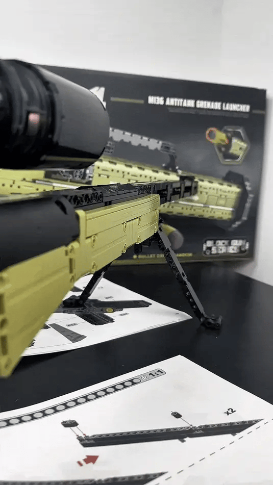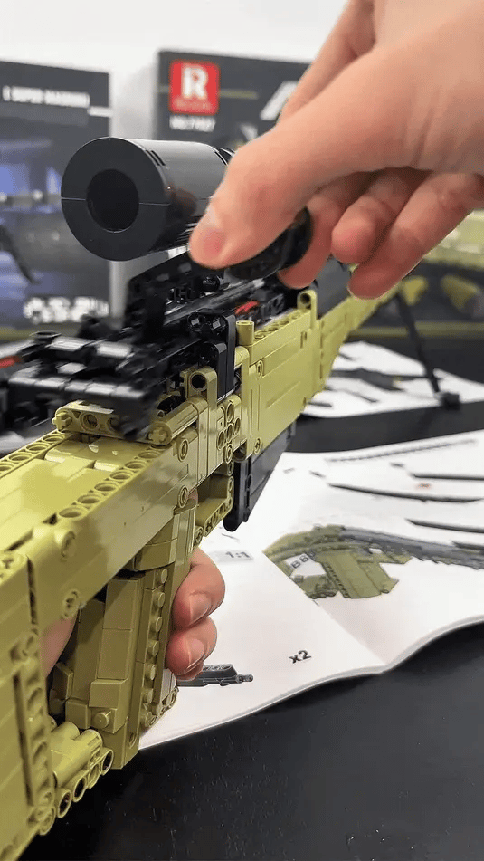 Replica a grandezza naturale, costruita con mattoncini, delle stesse dimensioni dell’AWP originale per un’esposizione accurata. Realizzata a mano con mattoncini compatibili ABS, con proporzioni autentiche e finitura di qualità museale.